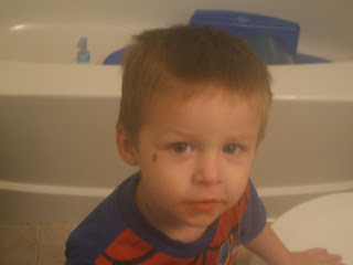Ok so John will totally die that I am posting this picture but I am so excited!! Today Dale went poop on the big boy toilet!! He kept telling me he pooped but his bum was clean so I ran and got his Elmo potty and he sat on it and... HE POOPED!!! Yeah!!!!